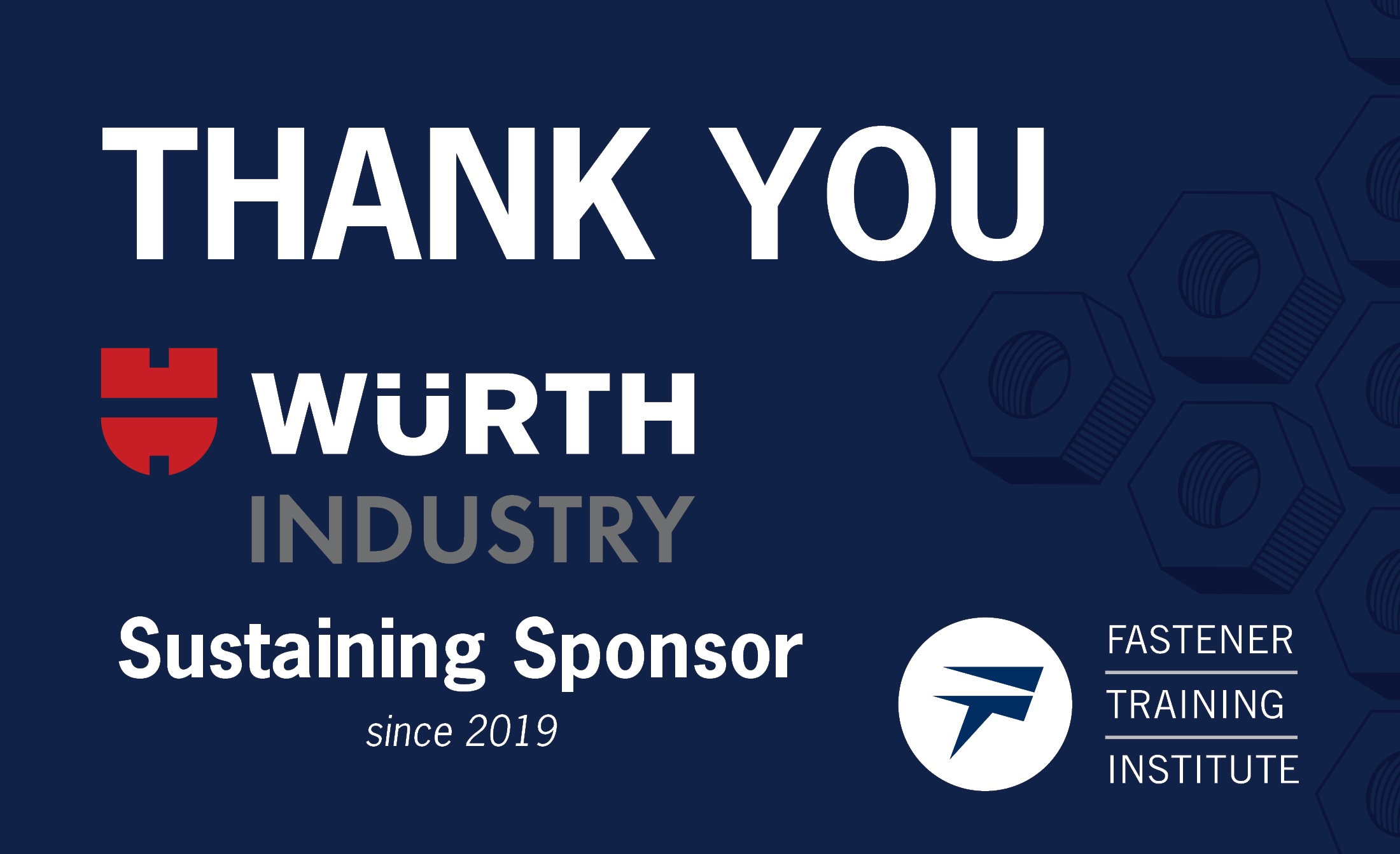 Fastener Training Institute (FTI) is pleased to announce Würth Industry USA (WIUSA) will continue as its sustaining sponsor once again in 2025.